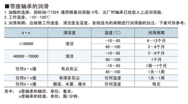 油浴潤滑是普通的潤滑方法,適于低、中速帶座軸承的潤滑。方法是將帶座軸承一部分浸在由槽中,潤滑油由旋轉(zhuǎn)的帶座軸承零件帶起,然后又流回油槽油面應(yīng)稍低于低滾動體的中心。滴油潤滑適于需要定量供應(yīng)潤滑油得帶座軸承部件,滴油量一般每3-8秒一滴為宜,過多的油量將引起帶座軸承溫度增高。用油泵將過濾的油輸送到帶座軸承部件中,通過帶座軸承后的潤滑油再過濾冷卻后使用。由于循環(huán)油可帶走一定的熱量,使帶座軸承降溫,故此法適用于轉(zhuǎn)速較高的帶座軸承部件。用干燥的壓縮空氣經(jīng)噴霧器與潤滑油混合形成油霧,噴射帶座軸承中,氣流可有效地使帶座軸承降溫并能防止雜質(zhì)侵入。此法適于高速、高溫帶座軸承部件的潤滑。以上就是帶座軸承潤滑方法了。